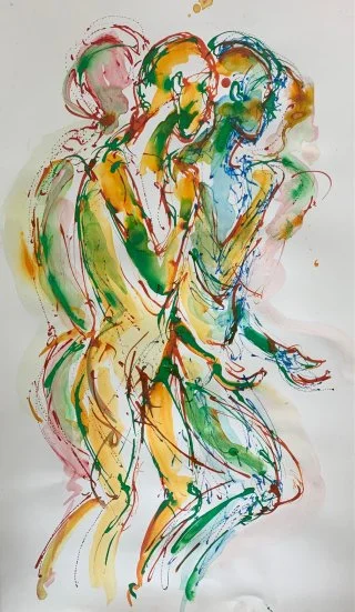 Figure study, movement liquid watercolours 50x40cm (SOLD)